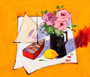 STILL LIFE WITH RED BOAT