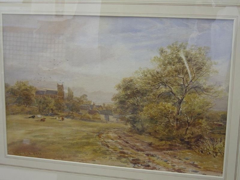 CATTLE IN A FIELD NEAR A VILLAGE