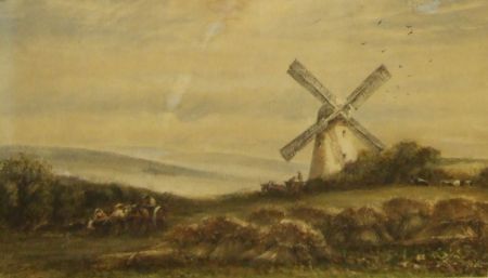 Extensive Landscape with Figures, Horse and Carts and Windmill