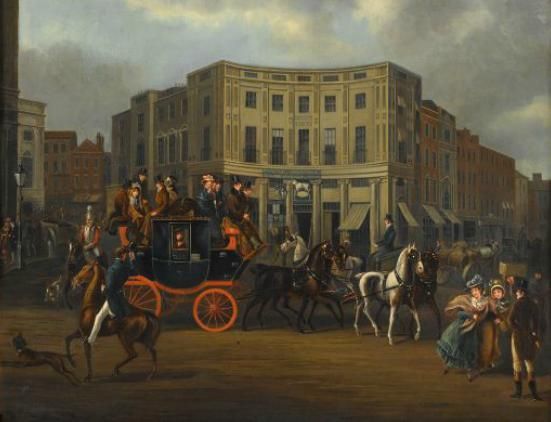 | THE BRIGHTON-LONDON ROYAL MAIL COACH PASSING REGENT CIRCUS | |