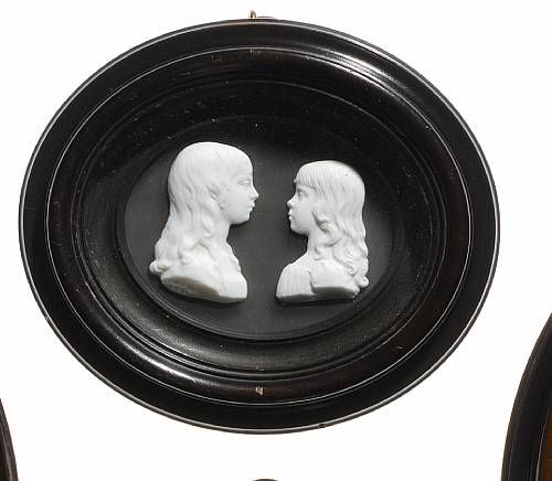 | A double portrait of Margaret Wardlaw, profile to right, and Agnes Wardlaw, profile to left, both wearing dresses with puffed sl | |