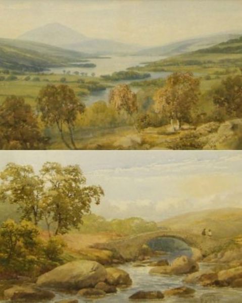 Lakeland Landscapes, one with Two Figures on a Bridge