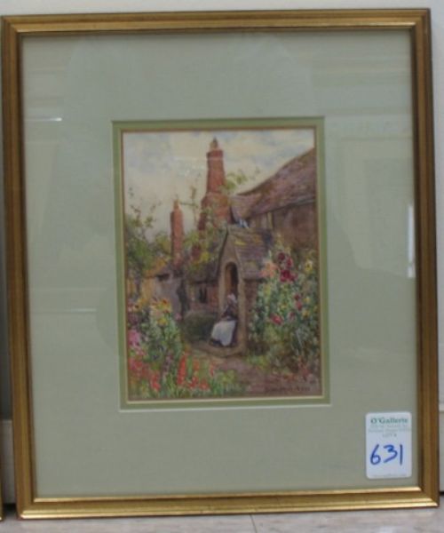 | Cottage Floral Garden with a woman sitting in the entryway | |