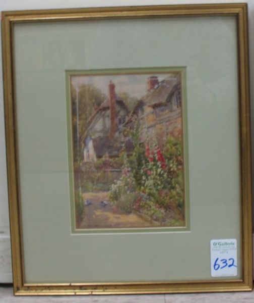 Cottage Garden with pigeons and flowers