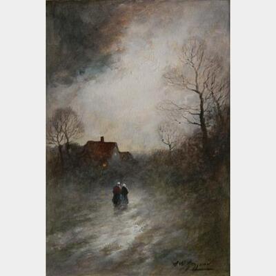 James Walter Gozzard (British 1862-1939)- ''A Misty Night''- watercolor on paper mounted to board, signed 'J. W. Gozzard' lower right. 9 1/4 x 6 1/4'' | |