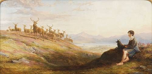 | Red deer feeding up-hill in the morning (the Corrie Buie of Ben-a-bourd in the distance-Invercauld Forest) | |