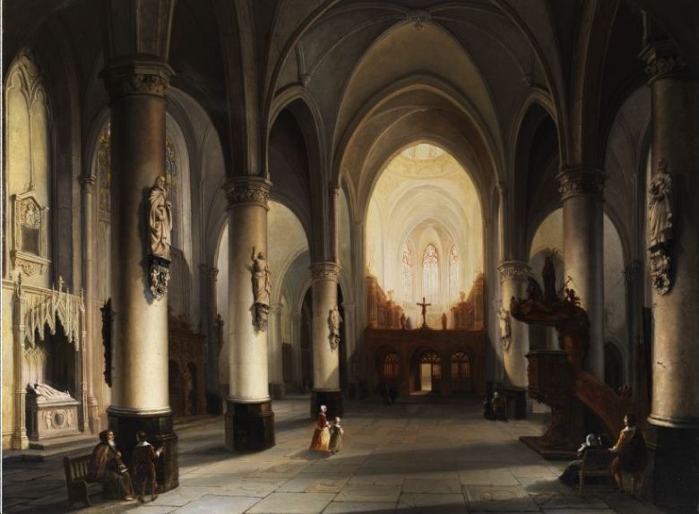GROSSES KIRCHENINTERIEUR MIT FIGURENSTAFFAGE