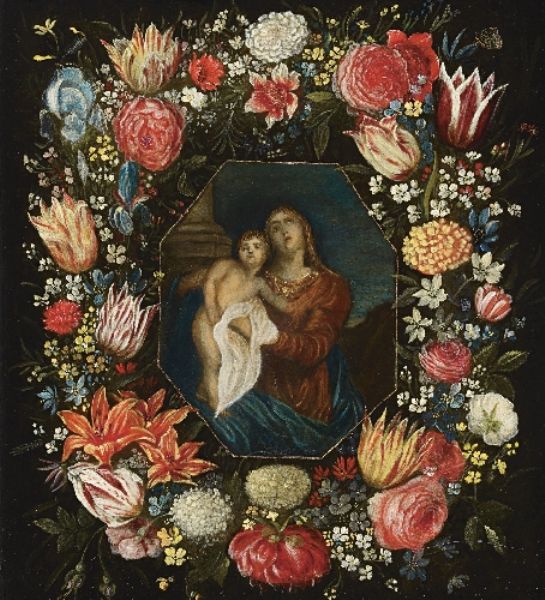 THE VIRGIN WITH CHILD IN A FLOWER GARLAND