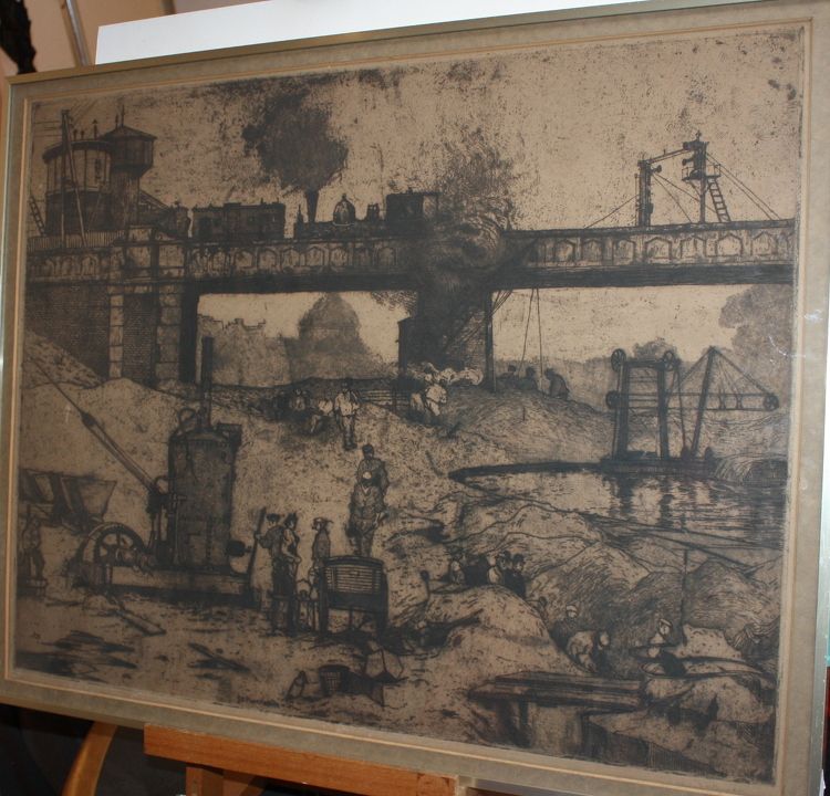 Arbeiders werkend aan het treinviaduct te Amsterdam