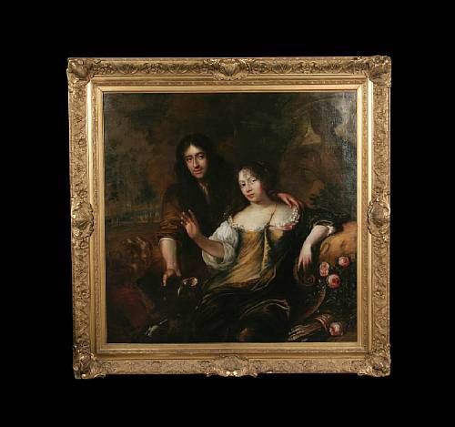 | Portrait of a couple as Atalanta and Meleager, half-length, seated in a landscape | |