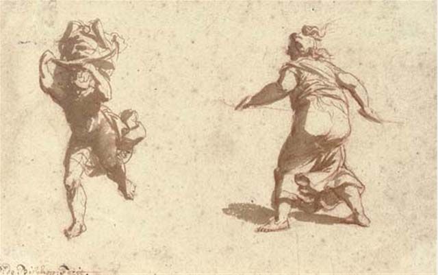 | A running figure with flying draperies, and a female figure seen from behind | |