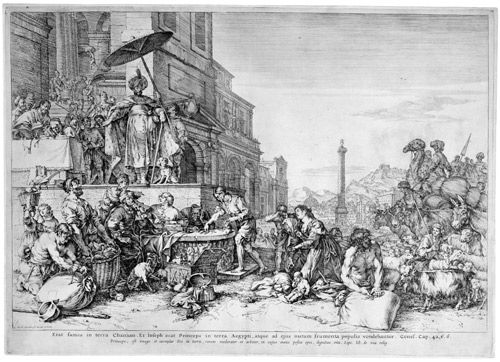 Joseph vertzeilt das Korn in Ägypten