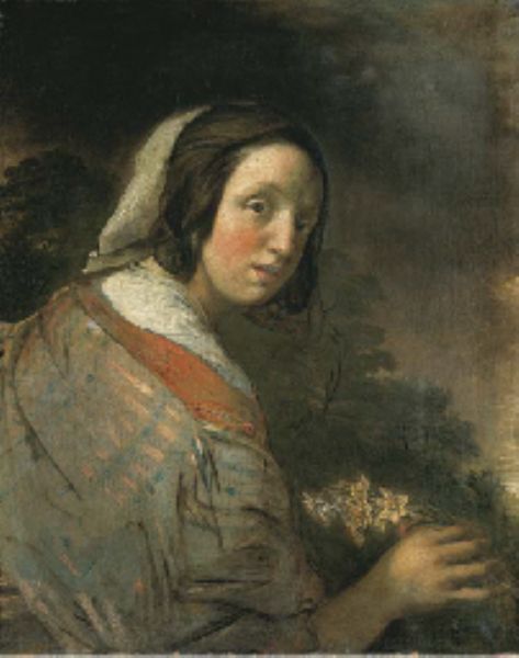 | Portrait of a young woman, half-length, holding a posy of narcissi in her right hand | |