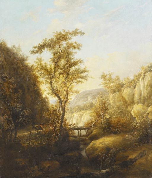 PAESAGGIO ROCCIOSO CON PONTICELLO E VIANDANTI