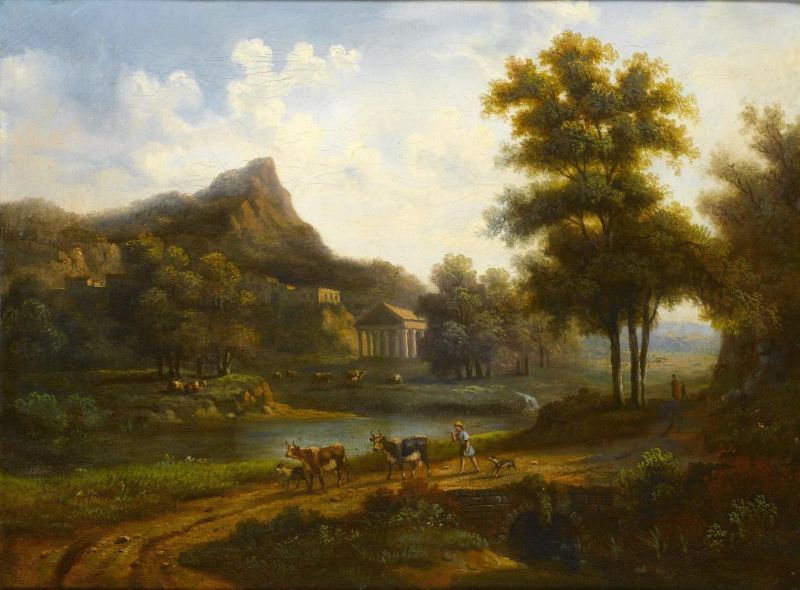 CLASSICAL LANDSCAPE WITH A DROVER AND OTHER FIGURES