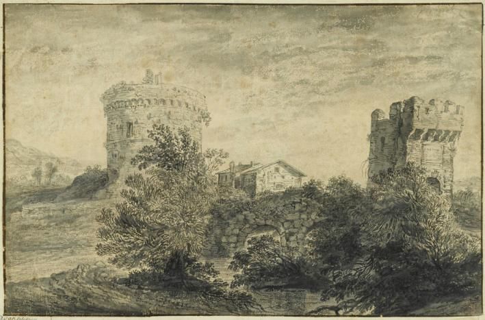 ITALIANATE LANDSCAPE WITH STONE BRIDGE