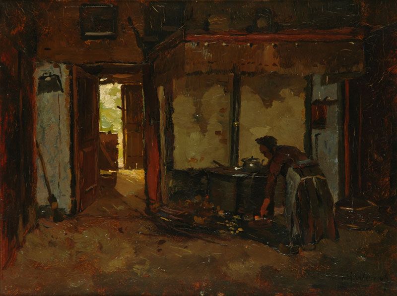 Interieur met boerenvrouw