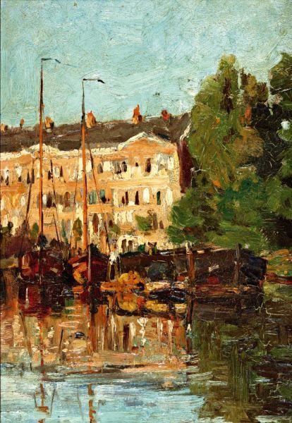 Zicht op stadshaven, mogelijk Amsterdam