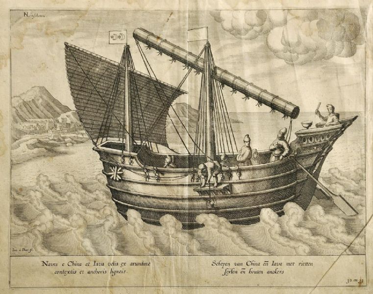 Naves e China et Iava velis ex arundine contextis et anchoris ligneis