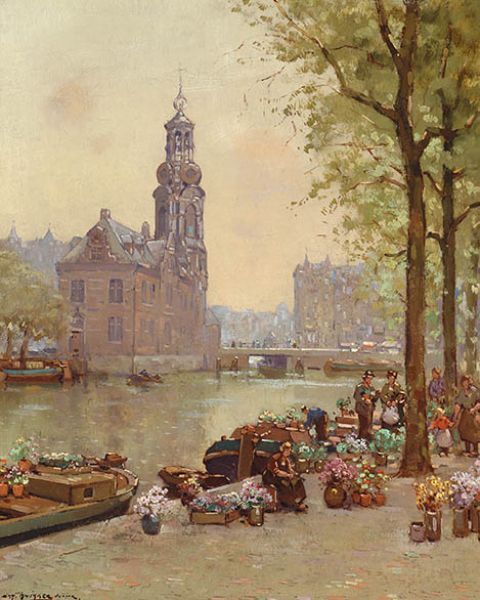 | Gezicht op de Bloemenmarkt en de Munttoren te Amsterdam | |