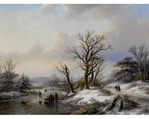 Winter landscape with figures on a frozen river