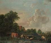 Cattle, sheep and goats in a landscape