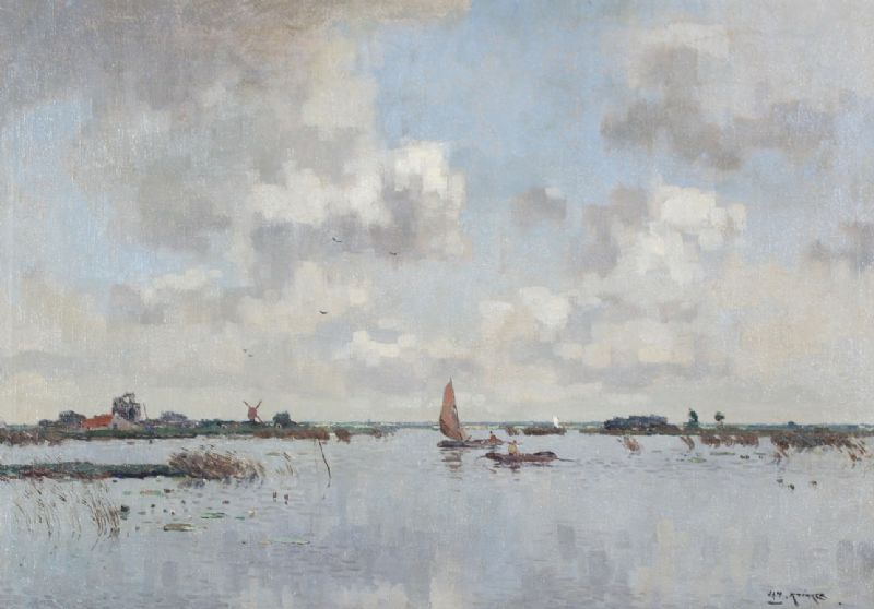 Polderplas met zeilboten en waterlelies.