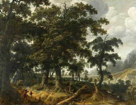 PAYSAGE PANORAMIQUE DE FORET AVEC UNE CHASSE AU CERF