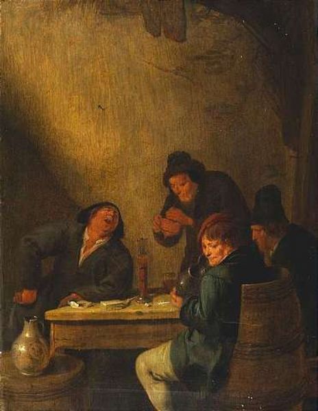 The interior of an inn with four figures