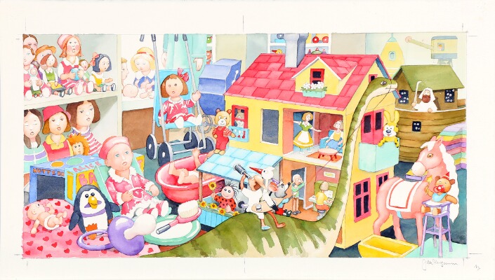 Illustration for the touch and feel book “Legetøjsbutikken”