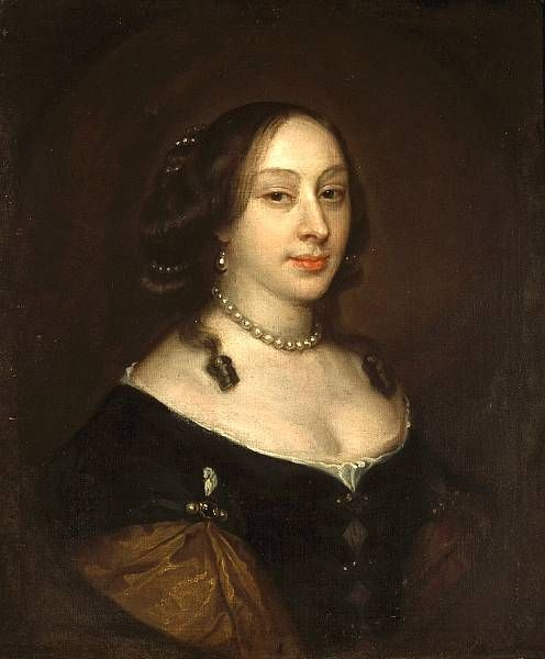 A portrait of a lady, quarter-length, wearing a pearl necklace