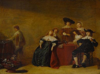 Vornehme Gesellschaft beim Musizieren und Zechen