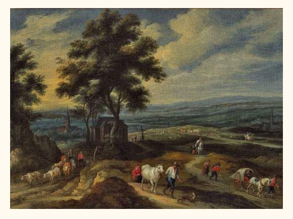 Paysage animé avec voyageurs