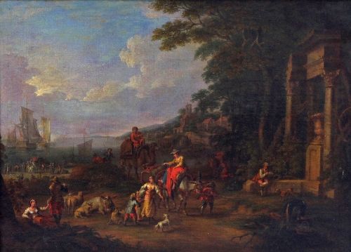 /Figures and Animals beside a Classical Ruin/ships in the distance