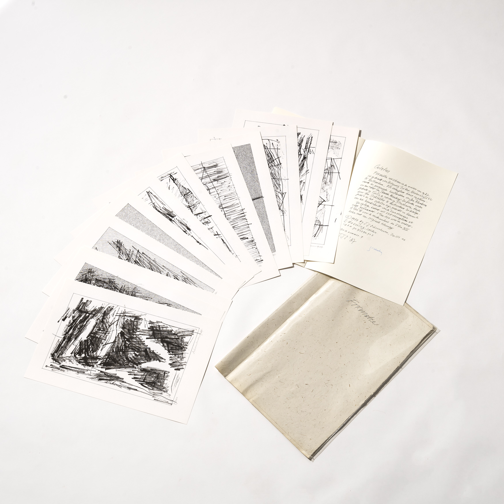 signed and dated 1987 lower right and numbered 7/100 lower left; Portfolio comprising 12 screenprints by Jan Schoonhoven and a text by Janneke Wesseling. The colophon signed by both, dated ’87 and numbered 7 | |