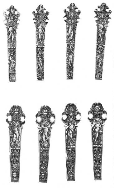 Vier ornamentale Entwürfe für Messergriffe mit ...