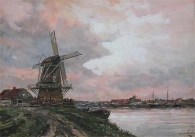 A river landscape with windmill