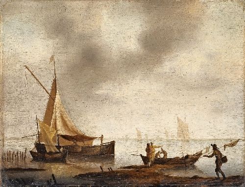 COAST LANDSCAPE WITH FISHERMEN AND BOATS