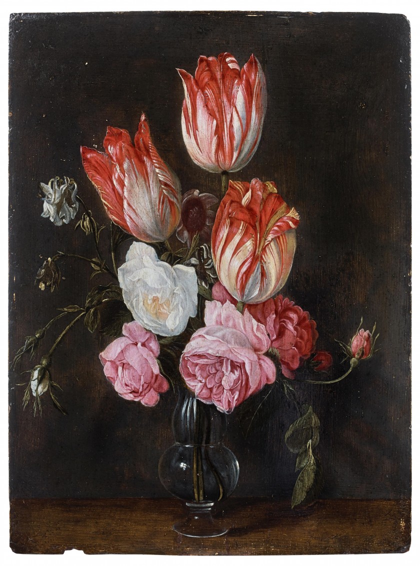 Bouquet de tulipes et de roses dans un vase