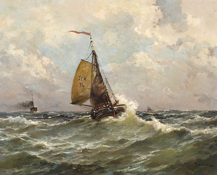Scheveningse bomschuit op zee