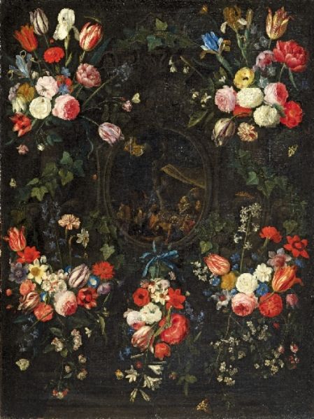 | FLOWER GARLANDS WITH THE ANNUNCIATION TO THE SHEPHERDS | |