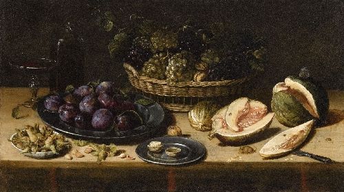 STILL LIFE WITH PLUMS, HAZELNUTS, GRAPES AND MELONS