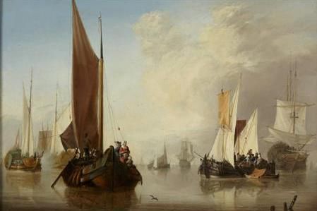 CALM SEAS WITH FISHING BOATS AND MAN-O-WAR