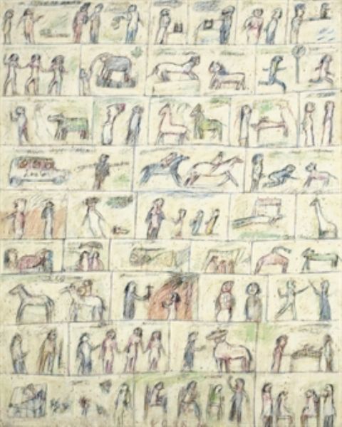 Oil pastel, charcoal on paper laid down on canvas