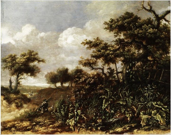 LANDSCHAFT MIT KRÜPPELIGEN EICHEN, DISTELGESTRÜPP UND BACHWEIDEN