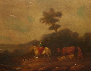 Figures and cattle on a rural track