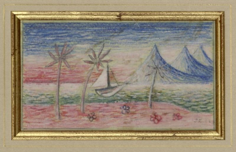 Bárky u ostrova s palmami
