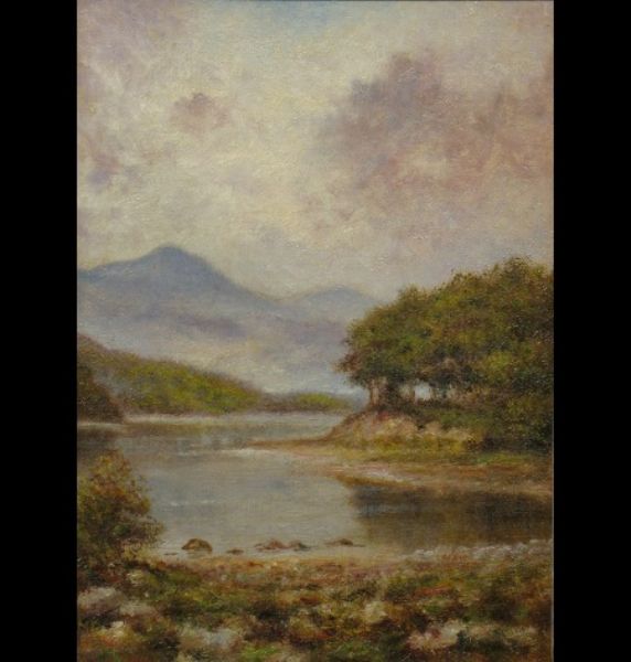 Lake landscape scene with Mount Snowdon in the distance