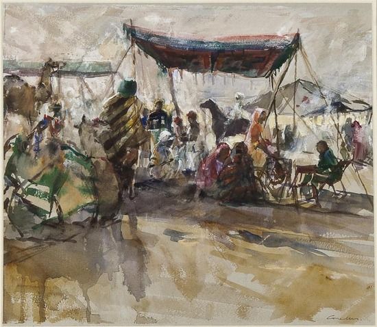 The Camp at Dawn, Pushkar Camel Fair, India; with The Holy Lake (India)