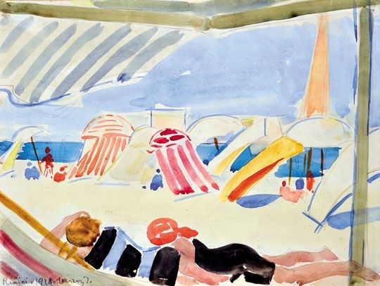 Rimini beach with two lying female figures